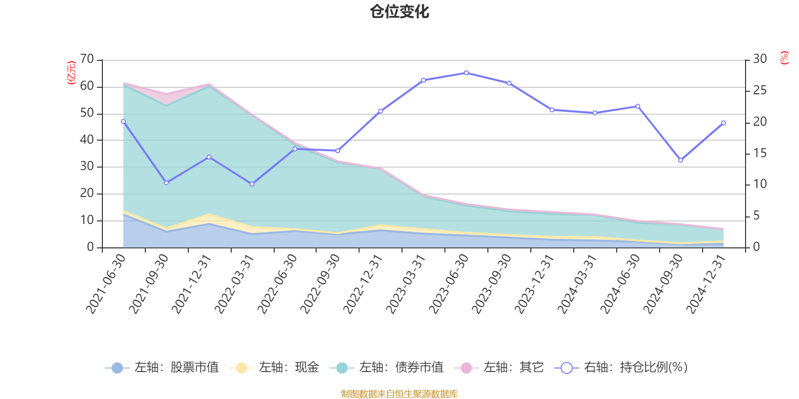 据定期报告数据统计,近三年平均股票仓位为20.35%,同类平均为18.69%。2023年上半年末基金达到27.92%的最高仓位,2022年一季度末最低,为10.15%。